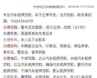 宁波汽车抵押贷款:业务一:汽车活抵车可开走七大优势:1、夫妻车父母车子女车不用本人到场都可活抵2、不做公证(无公证费)、不过户、不转保险。3、不用夫妻双方签字。4、不看资产、负债。5、个人..
