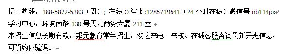 招生热线:188-5822-5383(周); 在线Q咨询:1286719641(24小时在线)微信号nb114px学习中心:环城南路130号天九商务大厦211室...